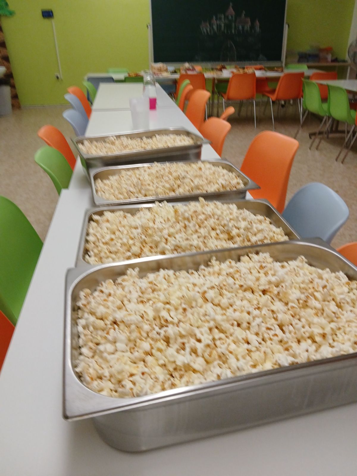 Společná večeře přinesla příležitost k odpočinku a sdílení dojmů, po které následovala filmová projekce na přání pro starší děti. Velkou radost všem dětem udělal bez výjimky popcorn, čtyři várnice této pochoutky zmizely doslova rychlostí blesku! Večerní jóga pomohla dětem se zklidnit a připravit na spánek.