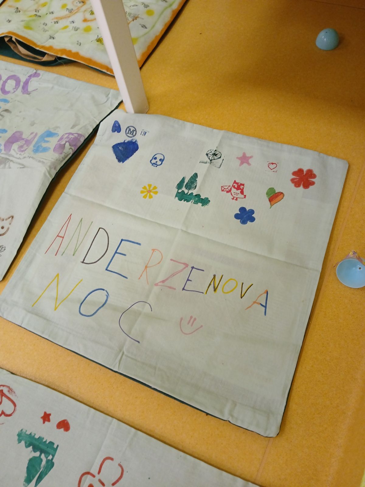 Pro děti byly připraveny dvě šifrovací stezky inspirované Andersenovými pohádkami, které je provedly kouzelným světem pohádkových hádanek. Kreativní tvorba nesměla chybět, a tak si děti vyrobily vlastní povlaky na polštářky, které jim budou tuto dobrodružnou noc připomínat.