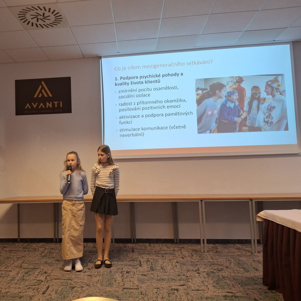 Nejsilnějším momentem ale byly autentické výpovědi samotných dětí. Na konferenci vystoupila Julia Kellerová, žákyně 4. třídy DidaSmartu, a také Karolína Walczysko, naše bývalá žákyně a dnes studentka gymnázia, které sdílely své osobní zkušenosti ze setkávání se seniory.